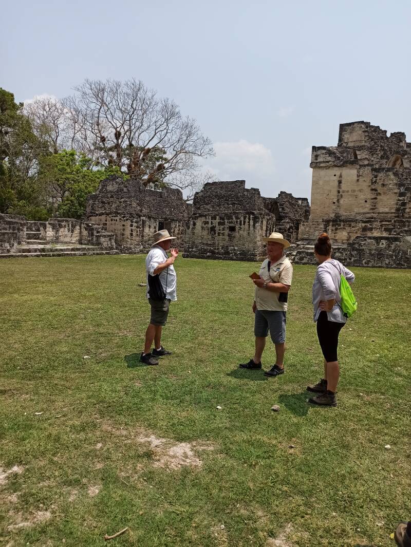 Einer der Höhepunkte unserer Reise war der Besuch der Mayastätte in Tikal in den Regenwäldern des Peten im nördlichen Guatemala. Die Mayas lebten vom frühen 1. Jahrtausend v. Ch. und erreichten ihren Höhepunkt im 8. Jahrhundert n. Ch. Die Stadt Tikal gilt als verlassen schon im 10. Jahrundert. Die Tempelanlage gilt als eine der bedeutendsten am besten erforschten Stätten. Da hat es uns auch nicht allzu viel ausgemacht, unter gefühlten 40 Grad zwischen den gut restaurierten Anlagen etwa 16.000 Schritte zurückzulegen. Otto Slawinski, man darf ihn ruhigen Gewissens auch "wandelndes Lexikon" nennen, wusste viel Wissenswertes und Interessantes über Leben, Handelsbeziehungen, Macht und Herrscher aus den verschiedenen Epochen der Mayas zu berichten.