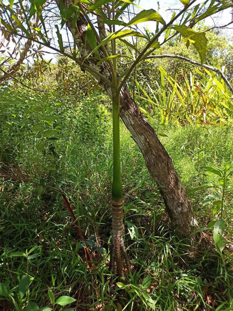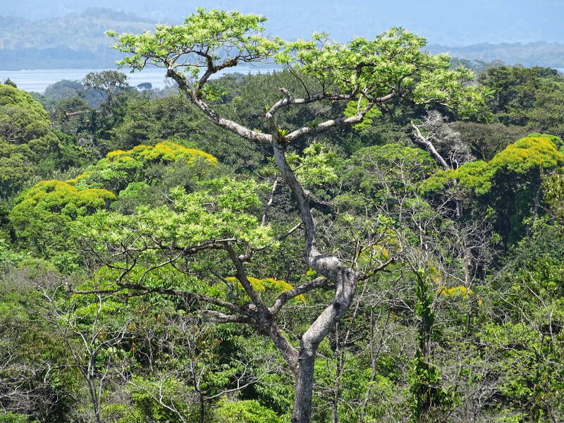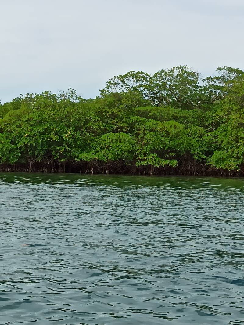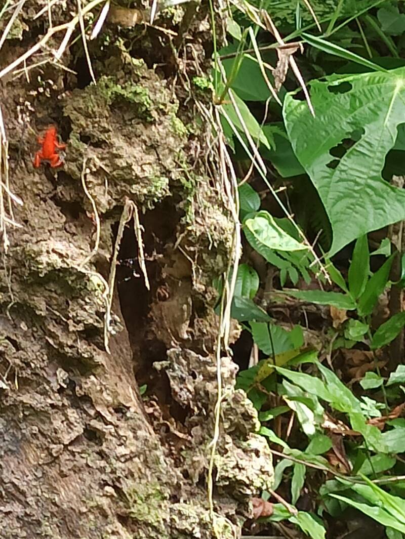 Der Wald, den wir besucht haben, wurde vor ca. 150 Jahren neu aufgeforstet, nachdem man ihn, bis auf einige wenige uralte Bäume, aufgrund eines großen Baumsterbens abgeholzt hatte. Die Wanderung stand unter dem Motto "Froschtour". Wir bekamen einheimische Pfeilgiftfrösche zu sehen, die es im gesamten Archipel gibt, auf jeder der Insel jedoch anders gefärbt sind. Auf der Insel Bastimentos hatten wir gestern die rote Art gesehen, heute waren sie gelb und grün. Zu sehen bekommen haben wir außerdem ca. 10 Zweifinger-Faultiere, die allesamt in den Bäumen lagen und schliefen. Drei Brüllaffen haben sich uns weit über uns gezeigt. Tucane haben wir nur gehört.