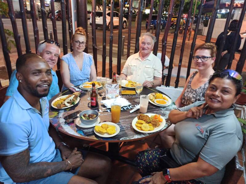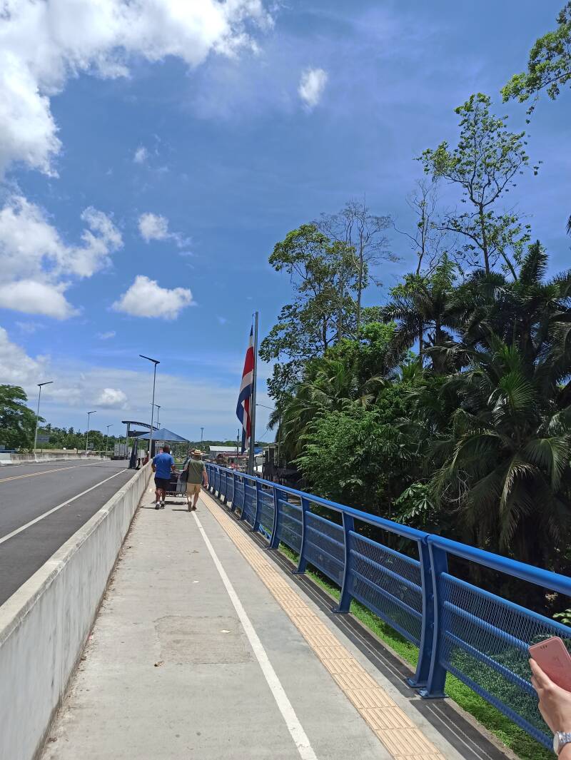 Die Reisegesellschaft sorgte für den Transfer bis zur ca. 30 km entfernten Grenze nach Costa Rica. Wir verließen Panama zu Fuß, überquerten einen Fluss und reisten in Costa Rica ein. Die Koffer wurden durch den Angestellten der Reisegesellschaft in einem Handwagen transportiert. Kurios und für uns nicht alltäglich war jedoch, dass wir damit auch zu Fuß die Zeitzone wechselten.