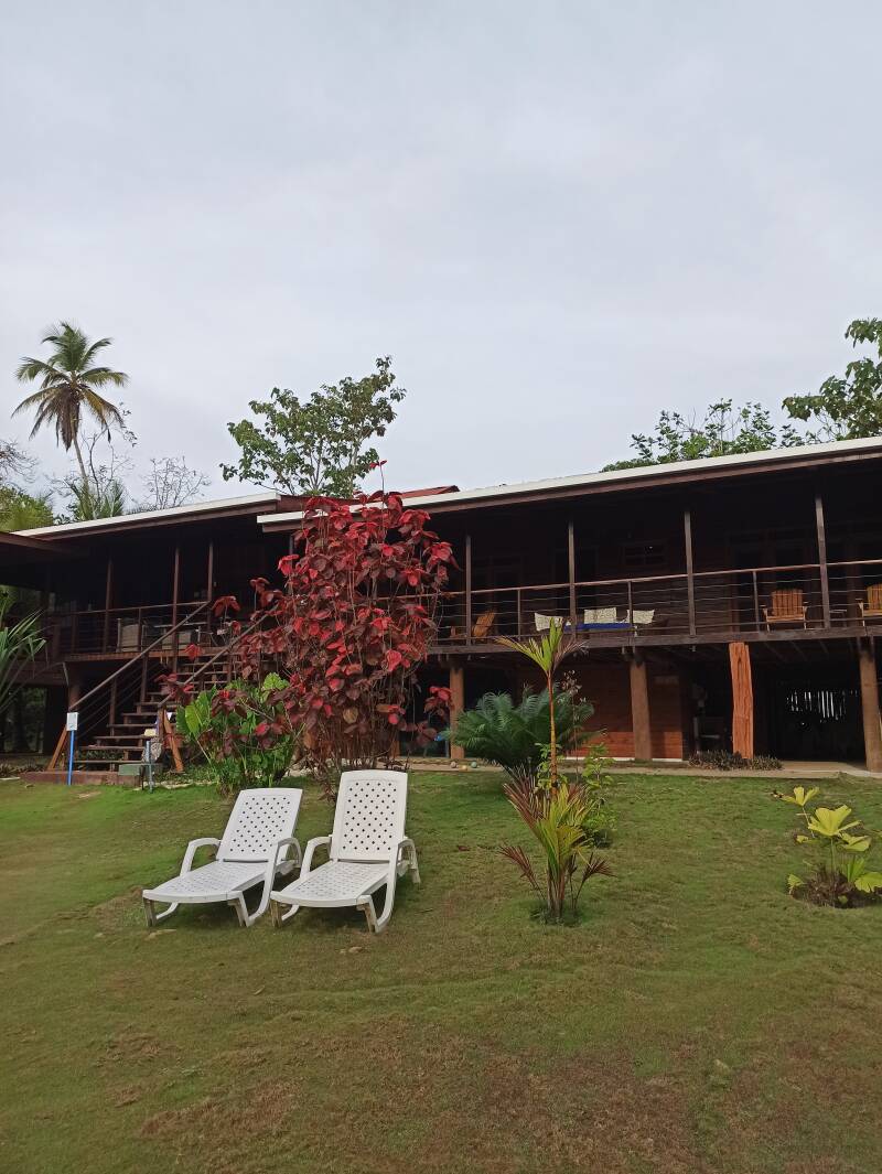 Der Flug nach Bocas del Toro gestaltete sich sehr abenteuerlich. Mit einer Stunde Verspätung wegen wasserfallartigen Regenfällen starteten wir in einer Propellermaschine, die ca. 60 Leute transportieren konnte. Nach einigen Turbulenzen sind wir schließlich nach einer knappen Stunde gut gelandet, auf einem Flughafen, wo sich, aus Gewohnheit noch heute spielende Kinder neben der Landebahn aufhalten und sich sogar ein Fußballplatz befindet.