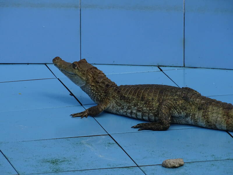 Diesen Baby-Kaiman hat der Bootsführer mit der Hand aus dem Wasser gefischt.