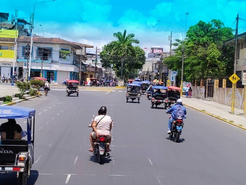Wir landen in tropischer Hitze im Norden Perus in Iquitos. Es ist die Hauptstadt der Region, die man nur mit einem Flugzeug oder Schiff erreicht. Sie ist das Tor zum tropischen Regenwald des Amazonas' auf peruanischem Gebiet. Die Stadt hat ca. eine Million Einwohner und 18.000 Tuc-Tucs. Die Stadt liegt auf 106 m über dem Meeresspiegel. Die Coca-Bonbons schmecken uns trotzdem noch gut.