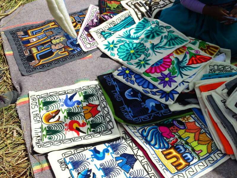 Unser erster Anlaufpunkt ist die 36 km entfernte Insel Taquile, der Weberinsel. Auf der Insel leben etwa 1.800 Menschen. Sie sind Nachfahren der Inka und sprechen noch heute Quechua. Auf der Insel wird Textilkunst ausgeübt, die zum imateriellen Kulturerbe erklärt wurde. Das Stricken haben die Männer übernommen und die Frauen weben.