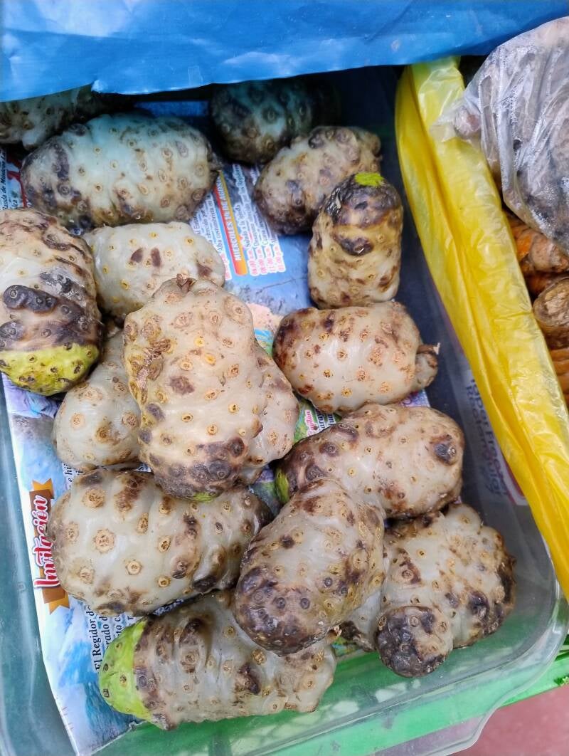 Nonifrucht, die widerlichste Frucht der Welt haben wir auf dem Markt im Colca Tal wiedergetroffen und noch immer stinkt sie wie ranziger Käse.