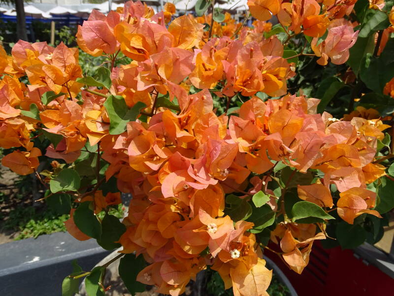 Hecke aus Plumbago (Bleiwurz) und Rosa Trompetenwein
